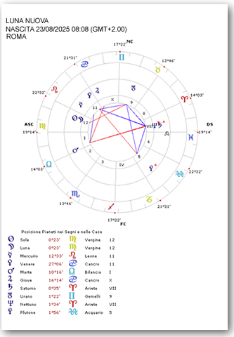 Nella carta di questa eclissi mancata per meno di un grado i luminari, dopo settimane di isolamento pressoché totale nelle fasi di lunazione, tornano a dialogare con gli altri pianeti. Gli aspetti con i lenti coinvolti nel trigono minore sono tesi: da un lato il quadrato a Urano in Gemelli dall’altro lo yod con Saturno/Nettuno in Ariete e Plutone in Acquario. Il primo più facilmente leggibile con la sua carica di ribellione e il desiderio inesauribile di novità, il secondo più complesso e a prima vista irrisolvibile